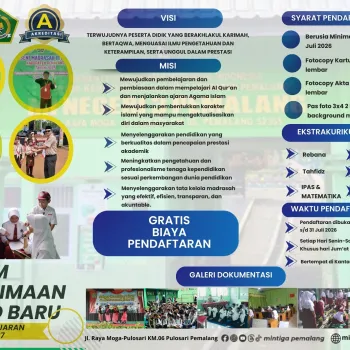 Puji syukur kita panjatkan ke hadirat Tuhan Yang Maha Esa atas limpahan rahmat dan karunia-Nya, sehingga MI Negeri 3 Pemalang dapat terus berperan aktif dalam mencerdaskan generasi bangsa melalui pendidikan kejuruan yang berkualitas.